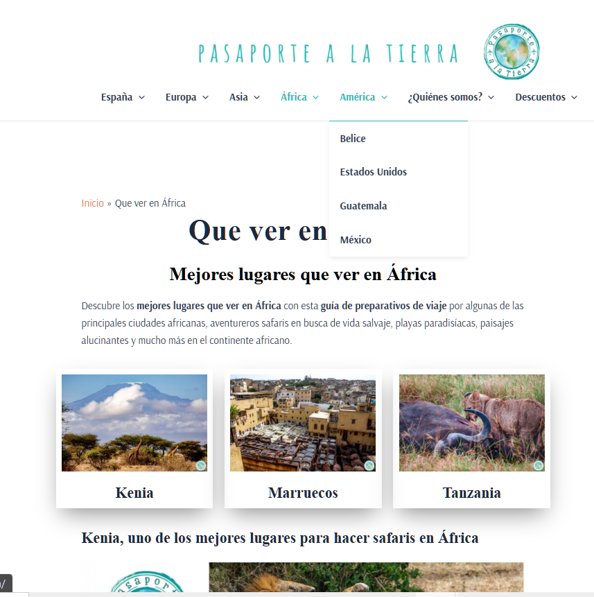 Apuesta siempre por plantillas optimizadas para SEO y mobile friendly, ya sean gratuitas o de pago. Es importante revisar que el desarrollador tenga trayectoria y mantenga la plantilla actualizada con frecuencia. Una plantilla sin soporte acaba quedándose obsoleta y genera más problemas que soluciones. Fíjate también en que la navegación sea intuitiva, con el contenido bien separado por continentes, países o tipos de viaje, una lupa de búsqueda visible y una home ordenada que invite a seguir explorando.