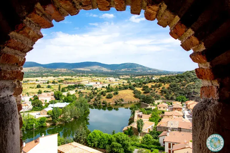 Nosotros comenzamos la visita a Buitrago del Lozoya por este mirador y te lo recomiendo tal cual. Desde arriba ves el conjunto amurallado completo, el meandro del río Lozoya abrazando el pueblo y esa sensación de villa encajada y protegida por su muralla defensiva. A nosotros nos puso la piel de gallina, porque es una postal perfecta y, además, el mejor mapa posible para ubicarlo todo antes de meterte por sus calles, entrar a los monumentos y caminar por los tramos de muralla. No hace falta ni decir, que desde aquí vas a conseguir las mejores fotos de Buitrago de Lozoya.